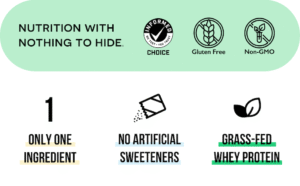 • ONLY ONE INGREDIENT: 100% Grass Fed Pure Whey Protein with zero additives. Naked Whey no artificial sweeteners, flavors, or colors and is GMO-Free, No rBGH or rBST, Soy Free and Gluten-Free.