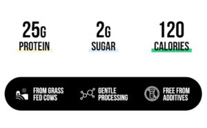 • MAXIMUM NUTRITION: 25g of Protein, 2g of Sugar, 3g of Carbs, 120 Calories, and 5.9g of BCAAs (branched-chain amino acids) per serving.